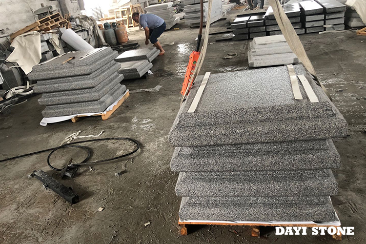 Coping Light Grey Granite G603-10 Top and long edges Bushhammered whit water groove 100x30x8cmx15cm