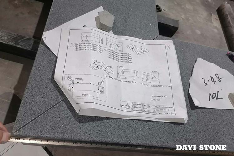 Coping Light Grey Granite G603-10 Top and long edges Bushhammered whit water groove 100x30x8cmx15cm
