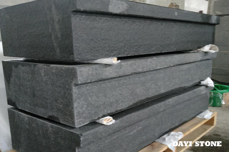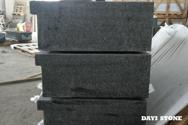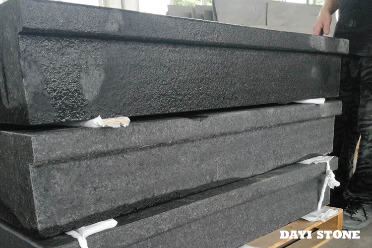 Stair Curve Dark Grey Granite Stone G654 Top and front edge flamed others sawn Lx35x15cm