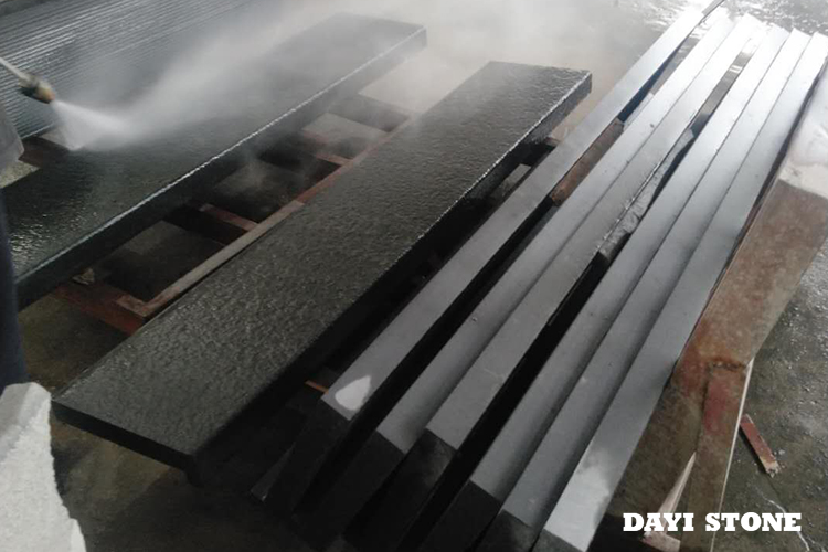 Regular Treads L shape MG-Black Basalt Top front and two heads flamed others sawn