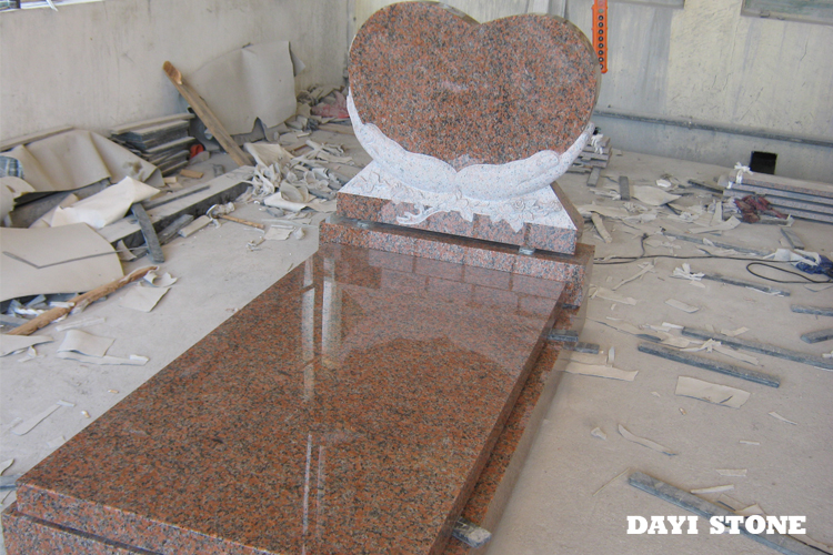 Heart Upright Headstones Dark Grey & Red Granite Stone