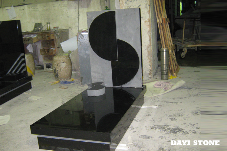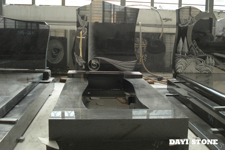 Shanxi Black Granite Headstones with Cross Shadow Carving