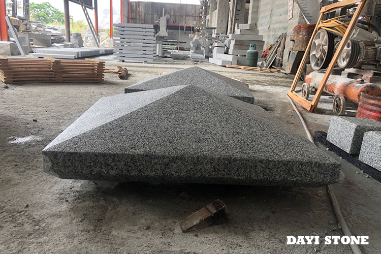 G633 Light Grey Granite Stone Roundsided pier caps Bushhammered