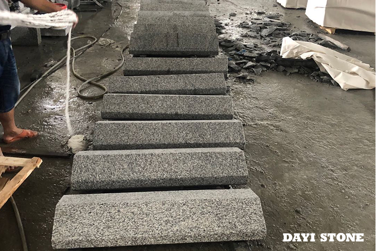 Coping Light Grey Granite G603-10 Top and long edges Bushhammered whit water groove 100x30x8cmx15cm