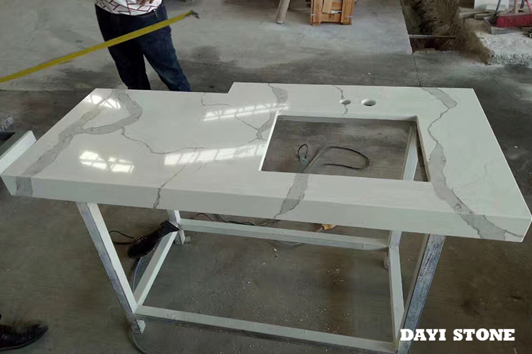 / Bathroom Vanity Top Quartz Calacatta White Polished