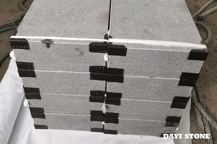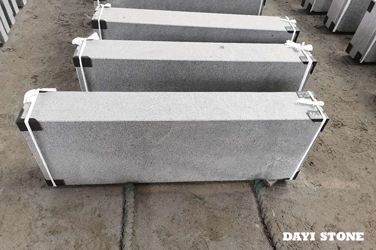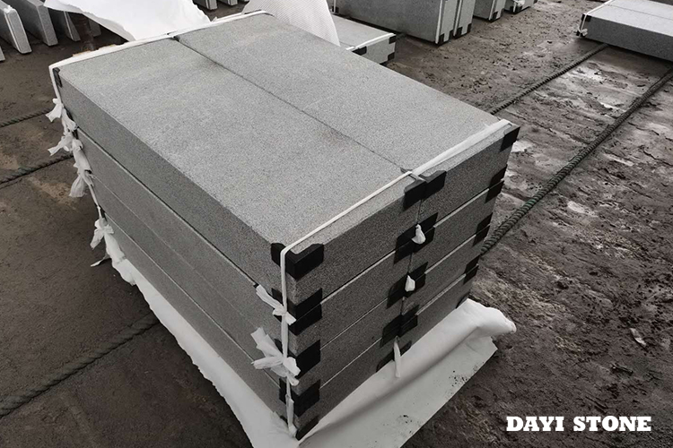 Stair Curve Dark Grey Granite Stone G654 Top and front edge flamed others sawn Lx35x15cm