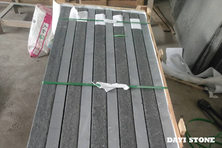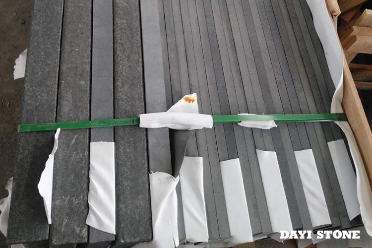 Regular Treads L shape MG-Black Basalt Top front and two heads flamed others sawn