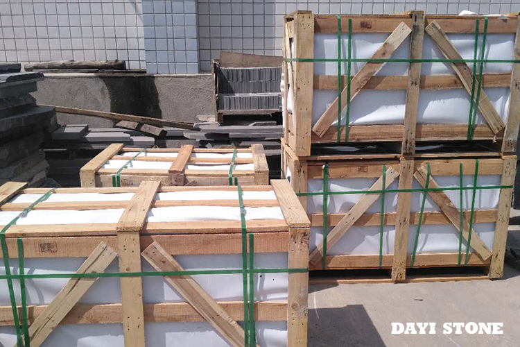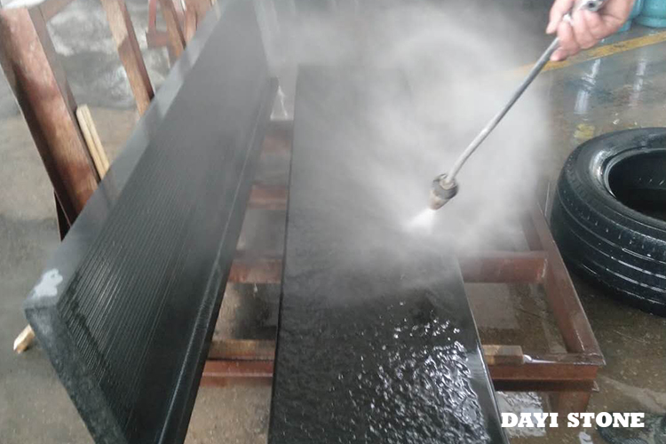 Pool Coping L shape MG-Black Basalt Top and front edge sandblasted others sawn
